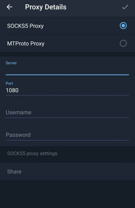 注意:用户可以在多种类型的代理之间进行选择,包括 SOCKS5 和 MTProto。 选择取决于用户的具体需求以及所需的隐私级别和速度。
