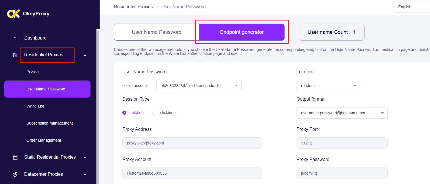 现在您已经了解了 Accovod Browser 的功能,接下来我们将介绍如何将其与 OkeyProxy 集成以增强您的多帐户管理。1.登录OkeyProxy:访问OkeyProxy网站检索您的代理信息。