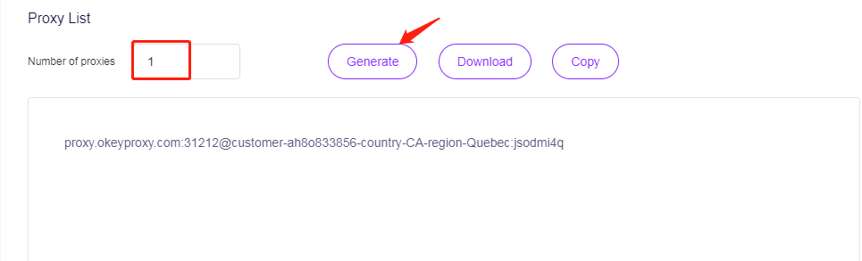 3.生成代理:指定您需要的代理数量,然后单击“生成”以获取代理凭据。
