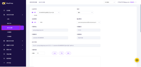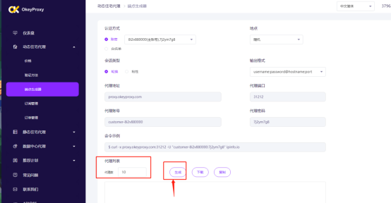 6、选择生成代理列表中的代理数量(1-1000之间的整数)生成格式。