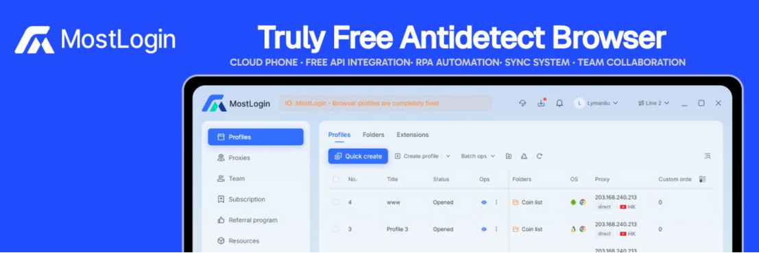 MostLogin 免费反检测浏览器正是为解决这一问题而设计的——它是一款功能强大的多账户反封禁浏览器,适用于个人和团队。