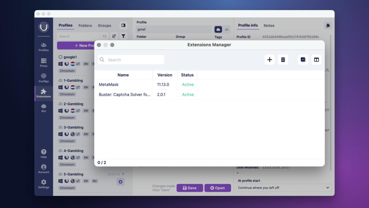 UnDetectable 针对各种操作系统进行了优化。 共有三个版本:适用于 Windows 10/11、适用于采用 M1/M2 芯片的 macOS 设备以及适用于采用 Intel 处理器的 macOS。从事大型项目将是一种乐趣。 UnDetectable 可以在几秒钟内加载超过 5000 个配置文件。 它支持使用云和本地配置文件进行大量工作。