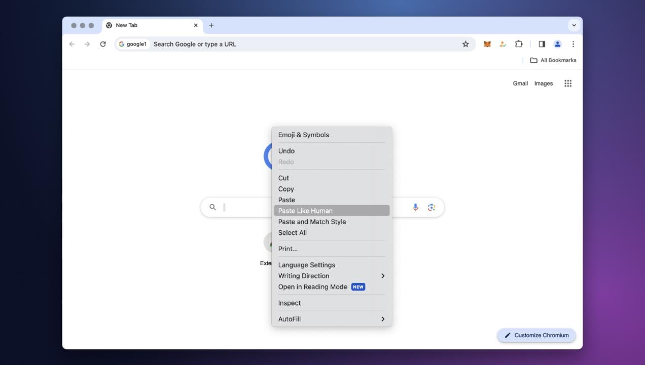 此功能在粘贴文本时模拟人类行为,创建更真实、更自然的浏览使用模式。 为此,只需复制文本并右键单击所需字段,然后选择“像人类一样粘贴”。 反检测浏览器会在粘贴文本时自动调整速度和暂停,使其更接近自然用户行为,并减少检测到自动操作的机会。