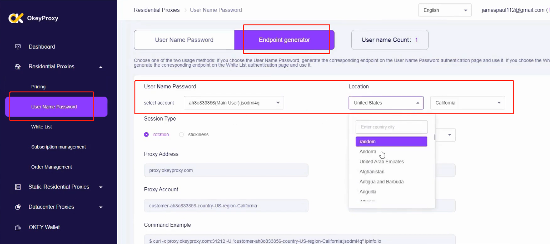 3. Enter the dashboard, click on [Residential Proxies] - [Endpoint Builder].