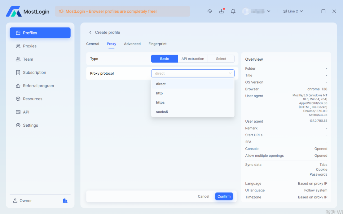 MostLogin supports HTTP/HTTPS/SOCKS5 proxies and works with both static and residential IPs.