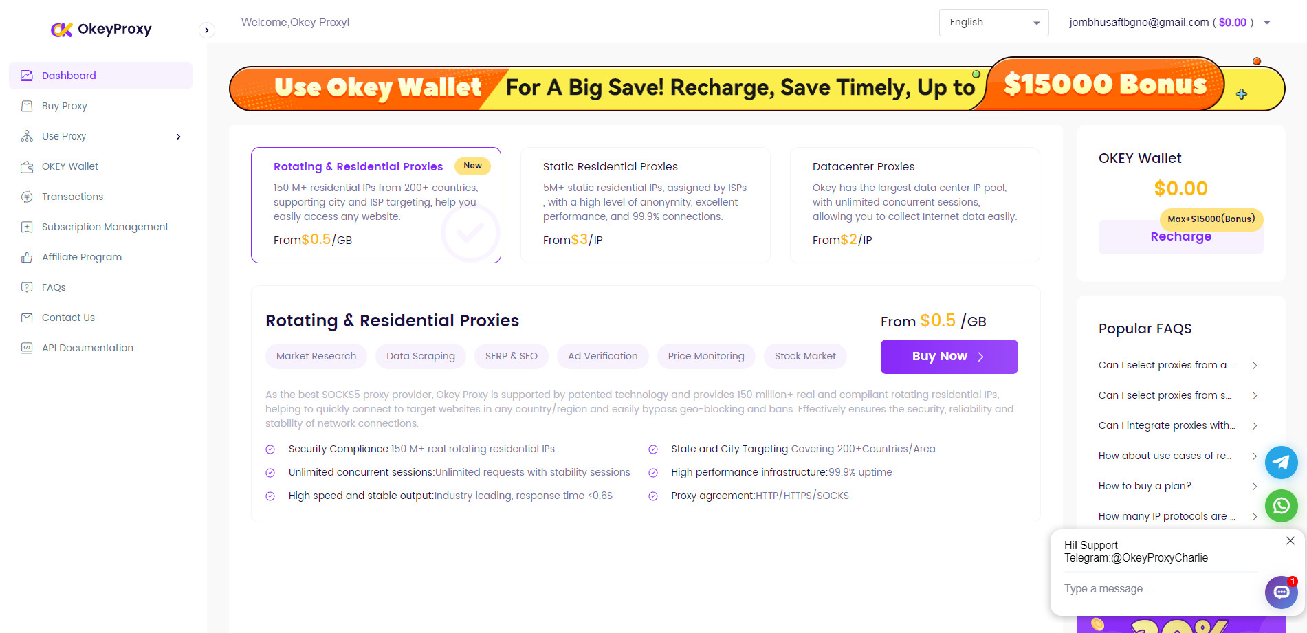 - にサインアップするか、アカウントを作成してください。 OkeyProxyプラットフォーム お客様のニーズに合ったサービスプランをお選びください。