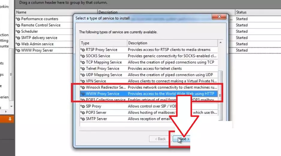 您将看到一个欢迎页面和左侧的导航菜单,上面有可用的配置选项。请重点设置代理。为此,请从导航菜单中选择 "服务",然后右键单击右侧空白处并选择 "安装服务"。